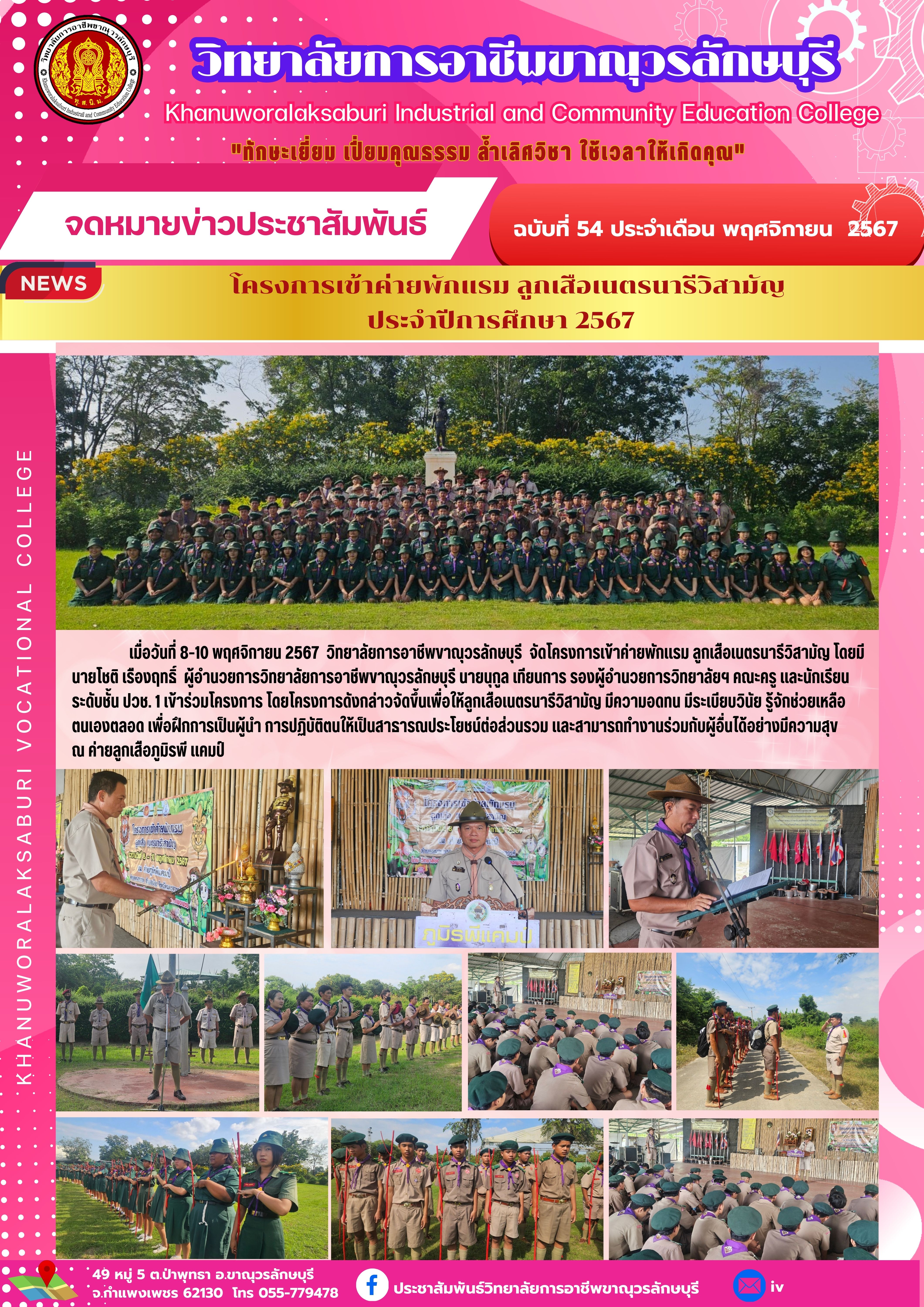 วันที่ 8-10 พ.ย. 67 โครงการเข้าค่ายพักแรม ลูกเสือเนตรนารีวิสามัญ ประจำปีการศึกษา 2567